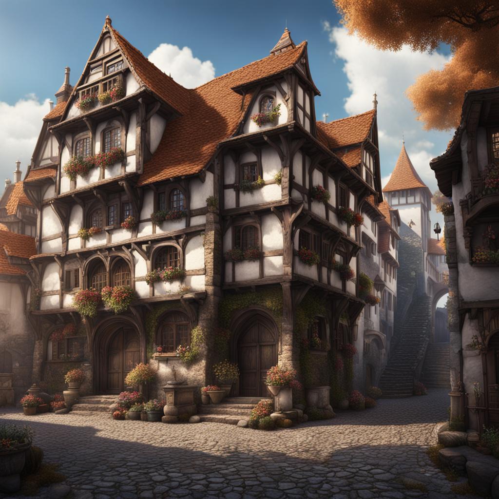 Des artistes de rue – jongleurs, musiciens, crieurs publics – captivent les foules par leurs talents et leurs histoires. Les enfants jouent à cache-cache entre les étals, leurs rires se mêlant aux cris des vendeurs. Quelques gardes, en faction, veillent discrètement à la sécurité, leurs regards scrutateurs balayant la foule.